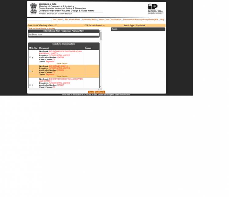 Now pick Phonetic against Search Form from the very first drop-down list and enter the brand name and class as mentioned above and search again as below.