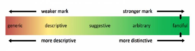 The "strength" of a mark is resolved to some extent by where it falls on this range. Fanciful marks are viewed as more grounded than intriguing marks, and along these lines are allowed more prominent security by the courts.