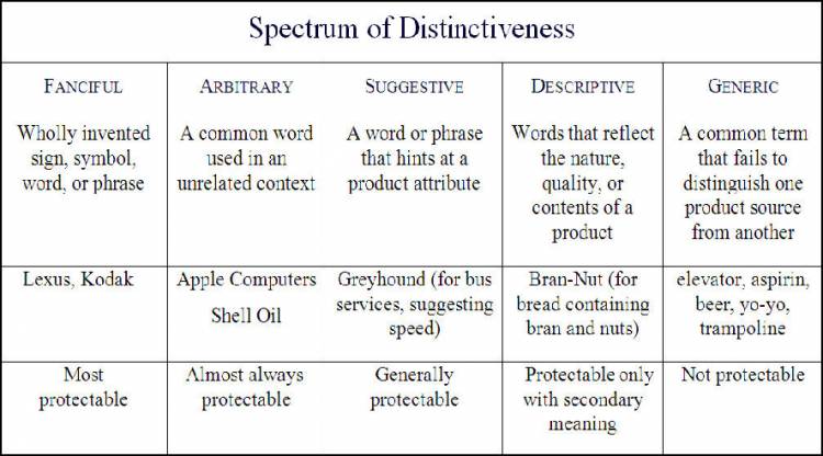 A gadget or device, (for example, a word or a logo) must be viewed as a trademark or a service mark on the off chance that it is particular. An unmistakable device/gadget is one that is equipped for recognizing the merchandise or services or administrations whereupon it is utilized from the products or services of others. A non-particular gadget is one that only depicts or names a trademark or nature of the goods or services. The uniqueness of a device/gadget can commonly be classified into one of five classifications which fall along with a range of peculiarity. From generally particular to least unmistakable, these classes are: