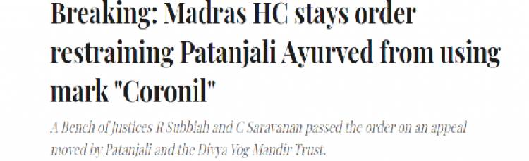 The court declared that since the defendant themselves rebranded ‘Coronil’ from being a cure for Covid to a simple immunity booster, there is no link between the tablet and the Coronavirus, and hence no reason for the defendant to use the name ‘Coronil’. As such, the use of such a name by the defendants is without due cause and is taking unfair advantage of the term which has already been trademarked by the plaintiff. Sinch such undue advantage is specifically prohibited under Section 29(4)(c) of the Trade Mark Act, the defendant should be prohibited from using the name ‘Coronil’.